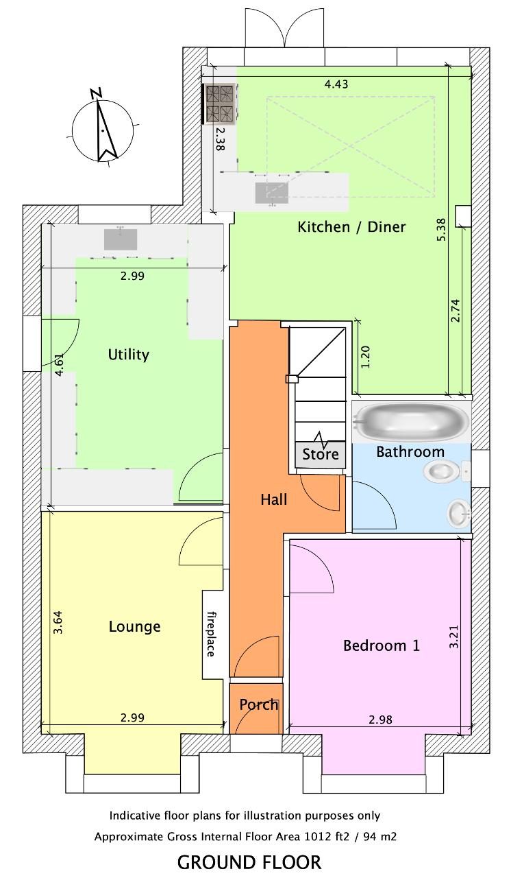 Upstairs, the dormer level offers a further bedroom, a shower room, and generous eaves storage, adding to the home"s flexibility and useful storage options.