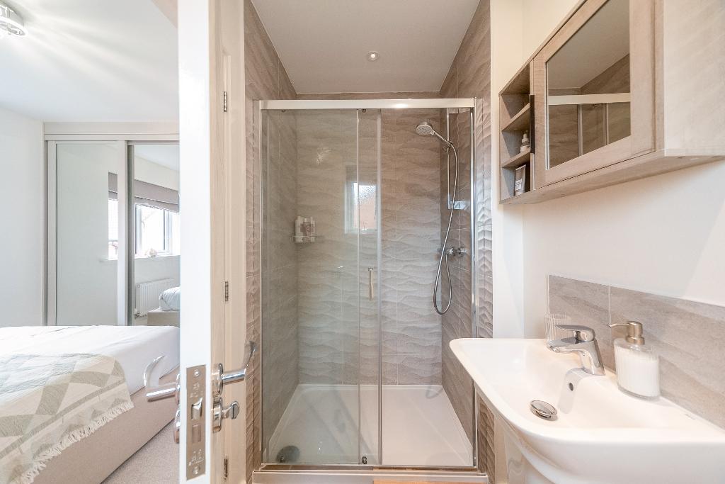 Upstairs, the property features four bedrooms, offering versatility for family living, guests, or a home office. The principal bedroom benefits from an en-suite shower room, while the additional three bedrooms are well-served by a modern family bathroom.