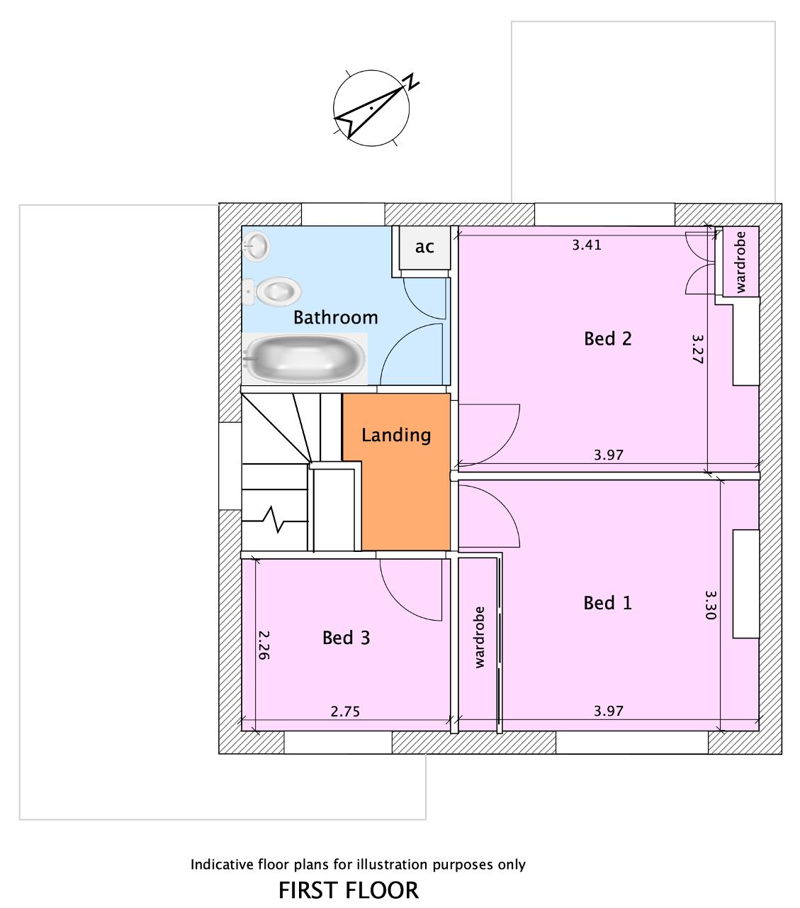 Upstairs, the accommodation continues to impress. The principal bedroom is a spacious double to the rear, complemented by a second generous double at the front and a smaller double bedroom at the front - all served by a stylish and well-appointed family bathroom.