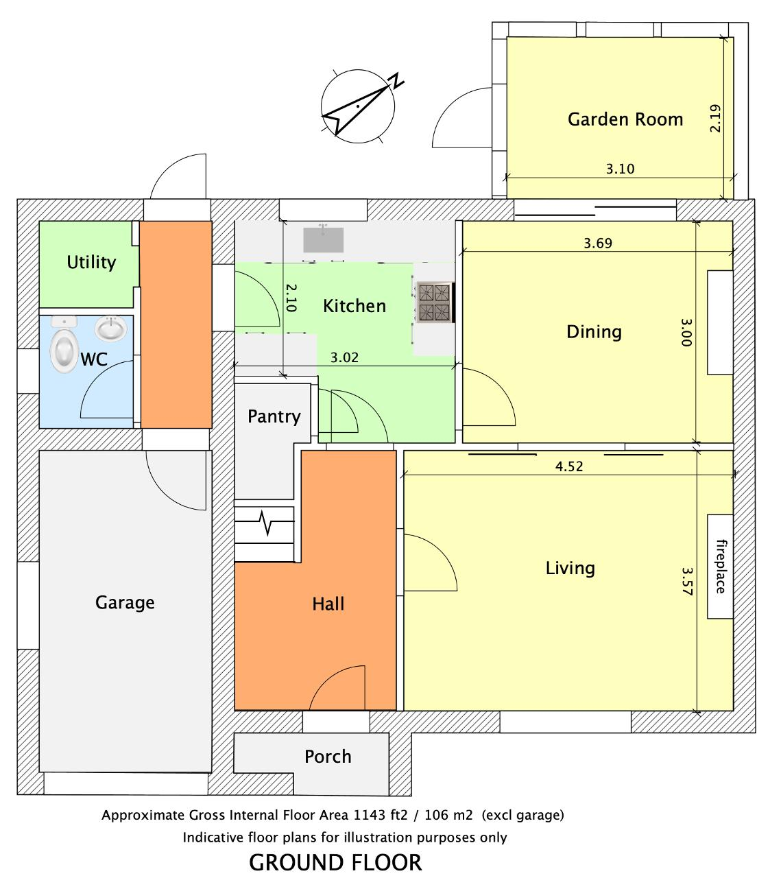 The kitchen is fitted with contemporary units and offers a practical layout, with access back to the hallway and also through to a utility area, downstairs cloakroom, and the integrated single garage.