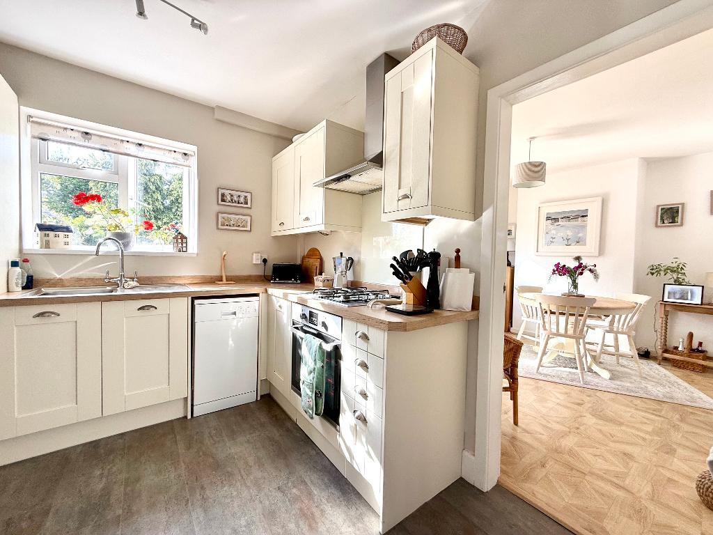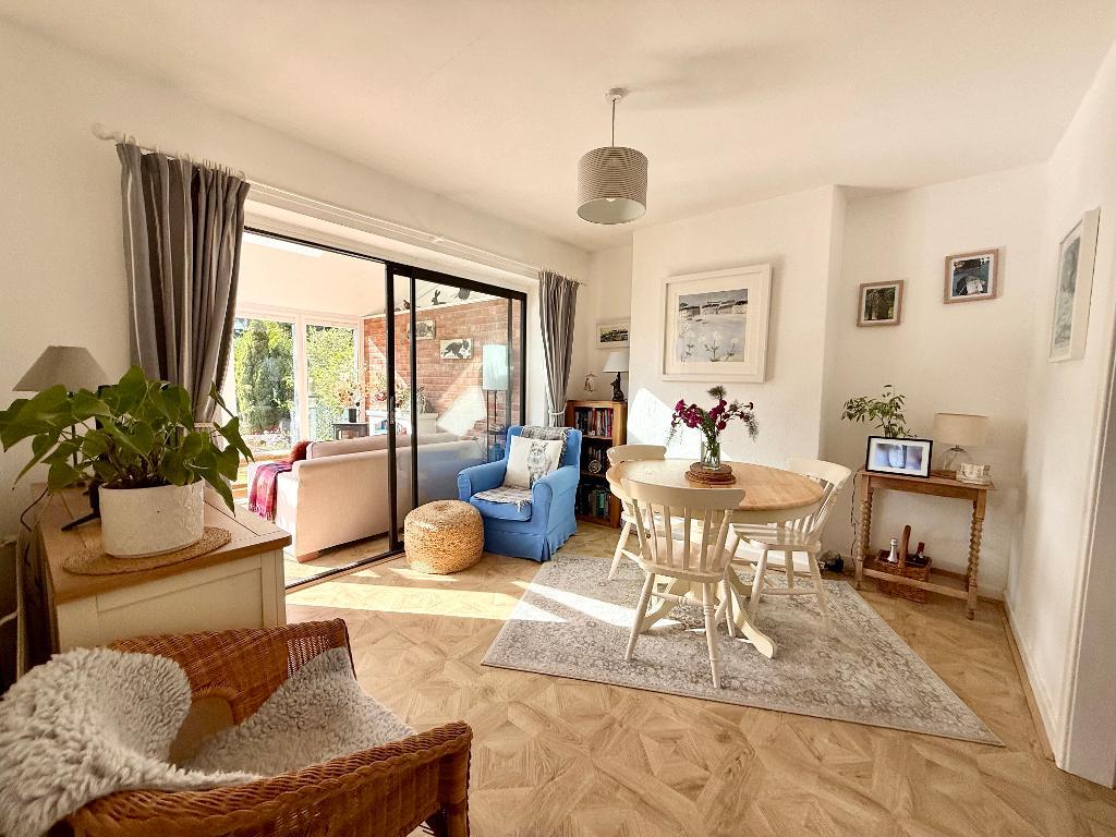 Tucked behind a pretty front garden and a driveway providing off-road parking, the property opens into a welcoming hallway with beautiful parquet flooring, setting the tone for the quality and style found throughout. To the front is a bright and elegant lounge where the parquet continues. This is a perfect retreat for quiet evenings and has a lovely flow through into a well-proportioned dining room at the rear.