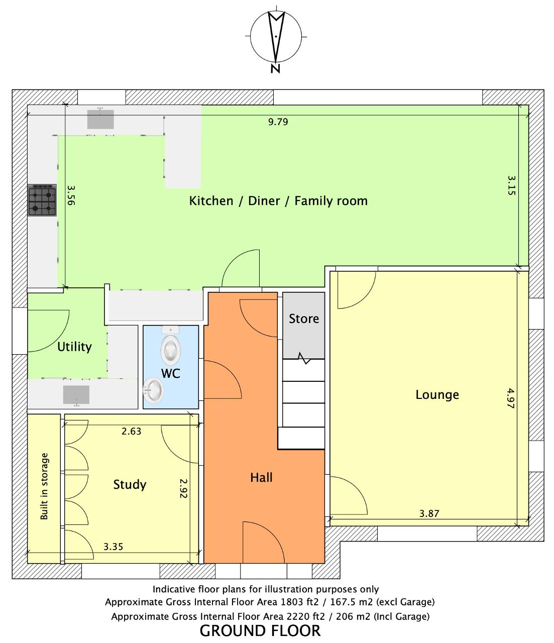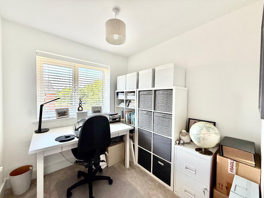 A welcoming hallway sets the tone, leading to a bright and spacious lounge to the front, with views across to the greenery of the nature reserve. There is also a separate fully fitted study - ideal for home working - and a downstairs WC.