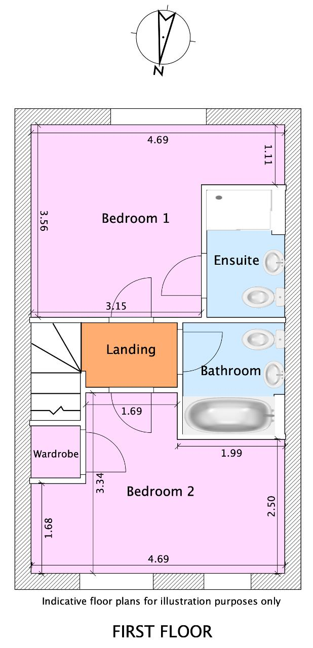 Upstairs, there are two generous double bedrooms - a real strength of this design. The principal bedroom is positioned at the rear and benefits from its own en-suite shower room, while the second bedroom sits at the front and is equally a great-sized double. A family bathroom completes the first floor.