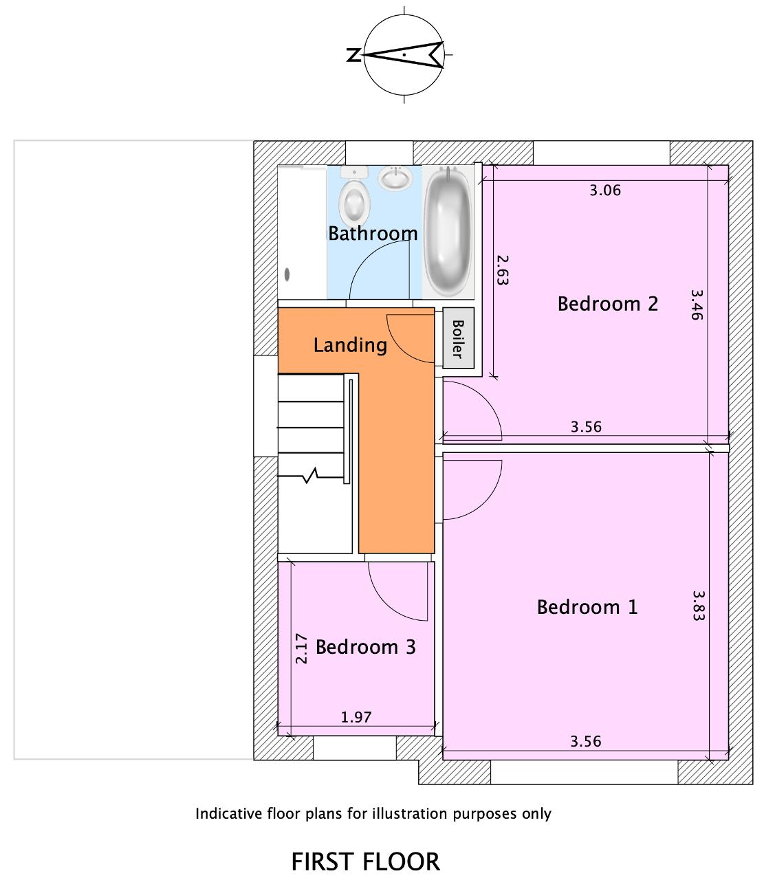Upstairs, there are three bedrooms: a double at the front, a second double at the rear, and a single bedroom at the front. The newly refitted bathroom is finished to a high standard with a walk-in shower, separate bath, WC and vanity basin.