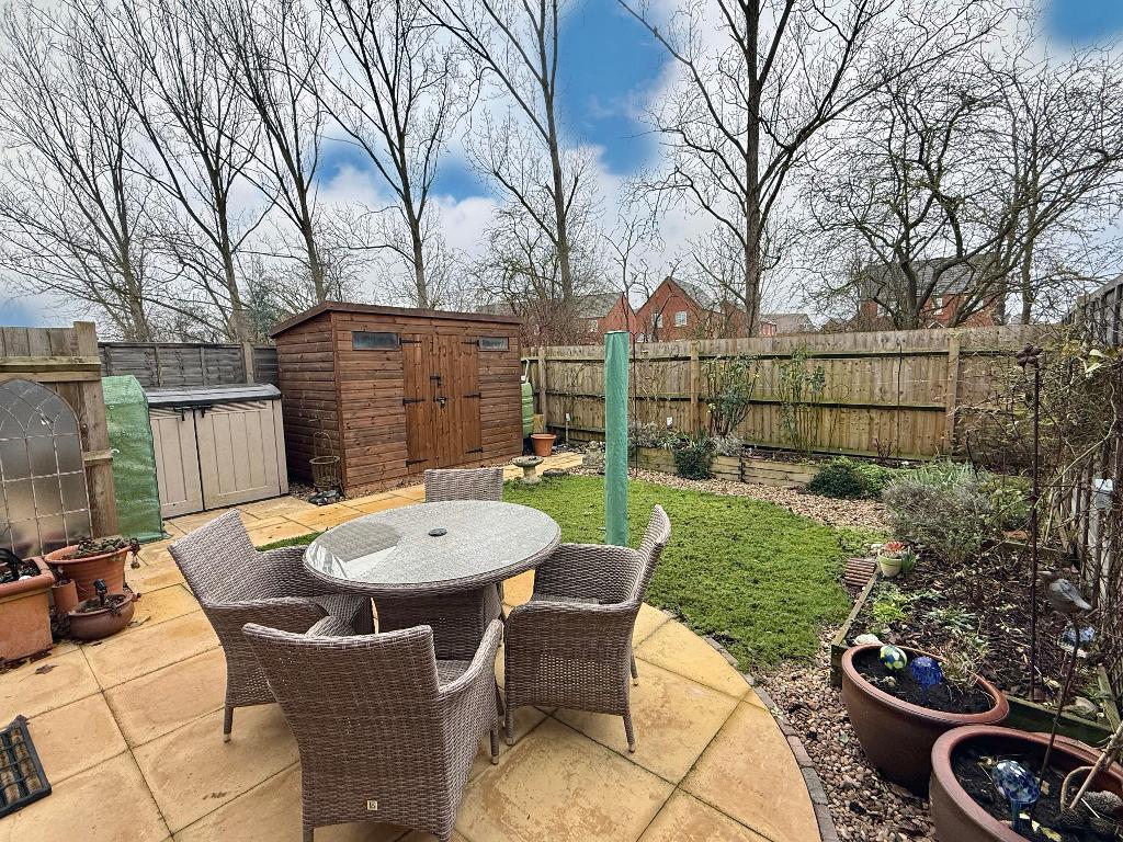 The rear garden has been thoughtfully and carefully landscaped, enjoying a desirable south-westerly aspect. A significant improvement programme was undertaken, with heavy clay soil removed and replaced with a deep layer of sand and quality topsoil, greatly enhancing drainage and creating a far more usable and well-balanced garden. Raised beds provide structure and interest, while the established chamomile lawn adds a soft, natural feel. A patio seating area offers an ideal spot to relax and enjoy the outlook, with the garden backing onto green space and mature trees, providing a pleasing sense of privacy.