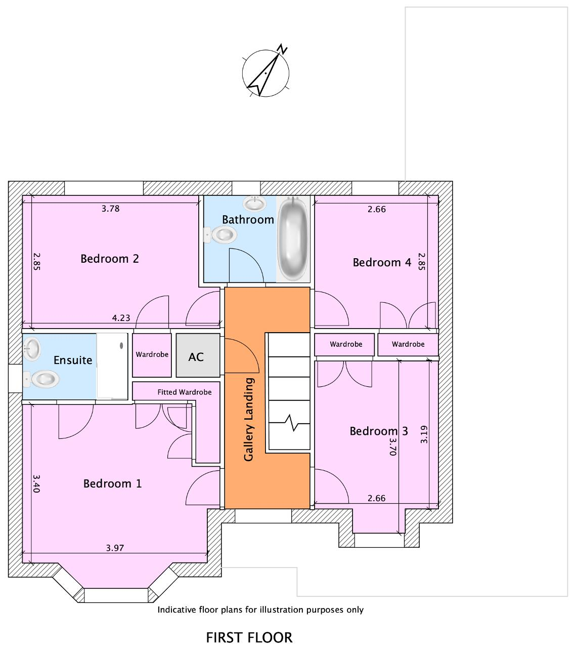 Upstairs, there are four double bedrooms, all with built-in wardrobes. The principal bedroom benefits from its own en-suite, and there is also a family bathroom.