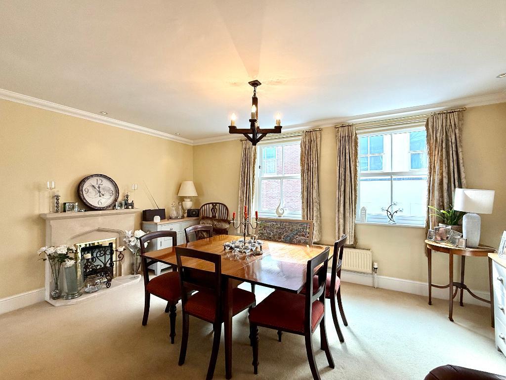 The principal reception space is a substantial lounge/diner, beautifully arranged for both formal dining and relaxed living. A Juliet balcony overlooks the well-tended communal gardens, providing an attractive outlook and a sense of separation from the bustle of town centre life, despite being only moments away from it.