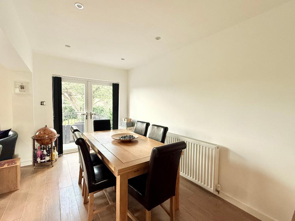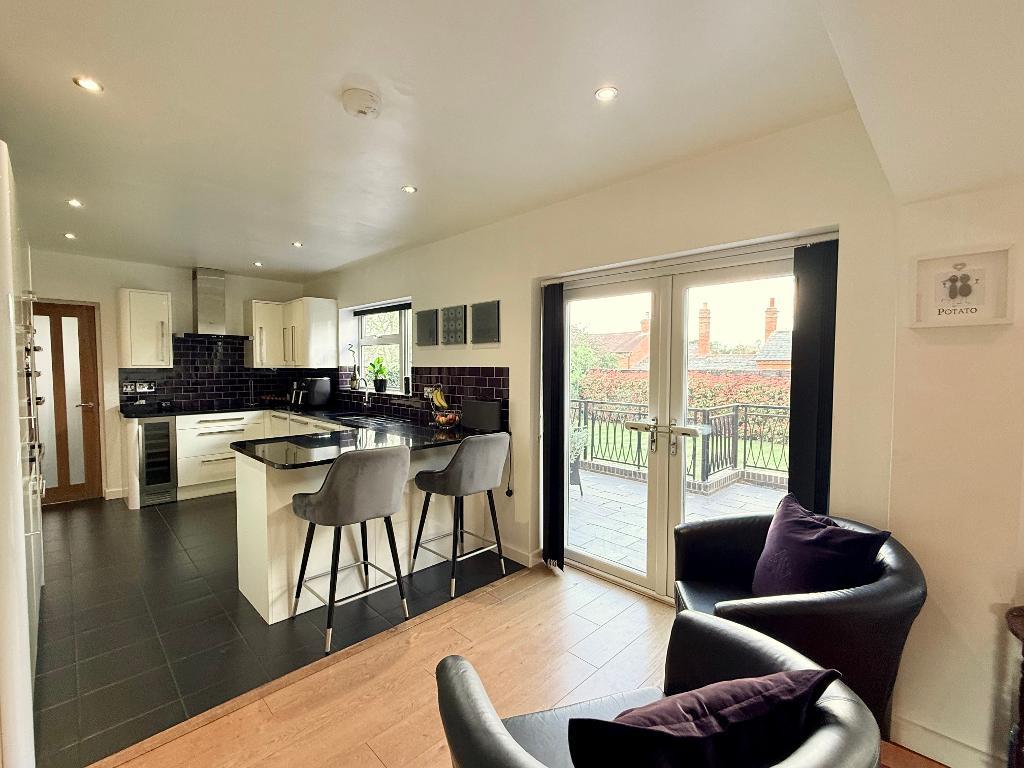 The property is entered via a welcoming hallway, complete with a useful storage cupboard, with access through to the rear of the house where the main living space unfolds. The kitchen/diner spans the back of the property and forms the hub of the home, fitted with a range of integrated appliances and centred around a breakfast bar. There is ample space for a dining table, and doors open out onto the rear garden, creating a natural connection between inside and out.