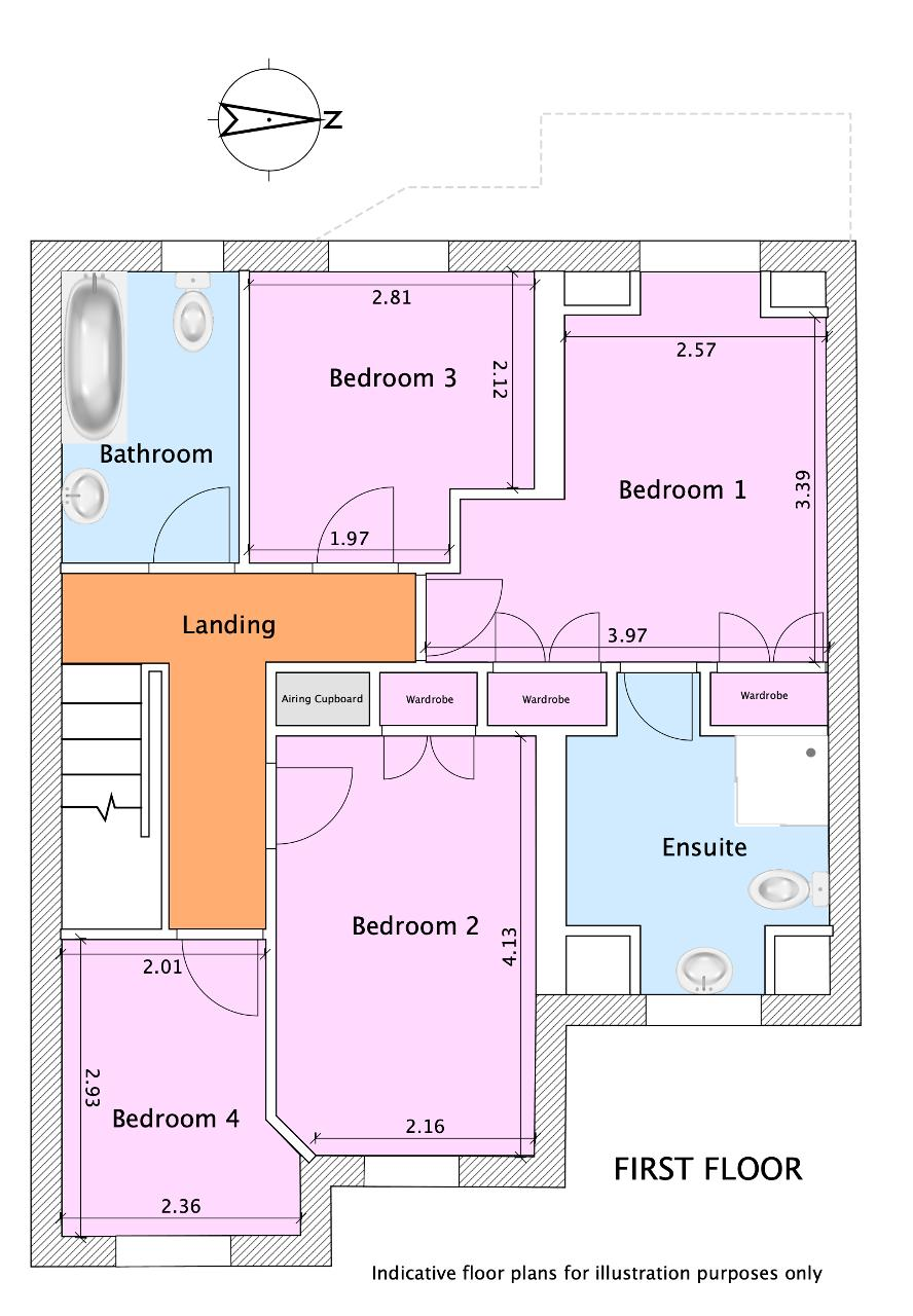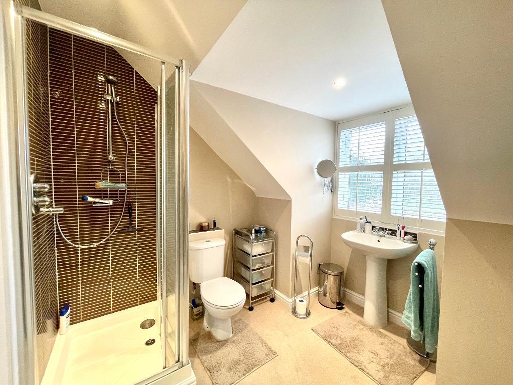 Upstairs, the main bedroom offers ample space and convenience with built-in wardrobes and an en-suite shower room. Three further bedrooms, one currently serving as an office, along with a family bathroom, complete the accommodation.