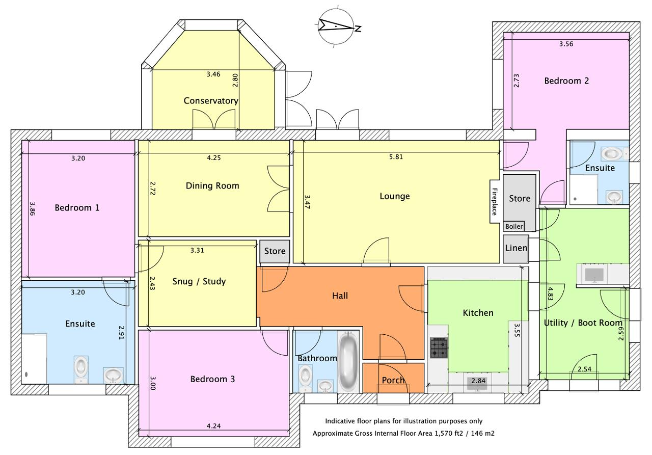 There are three double bedrooms in total. Bedrooms 1 and 2 both benefit from their own en suite facilities, while the third double bedroom is served by a smart family bathroom. Bedroom 2 can be accessed via a private side entrance and closed off from the main accommodation - offering superb privacy and flexibility.