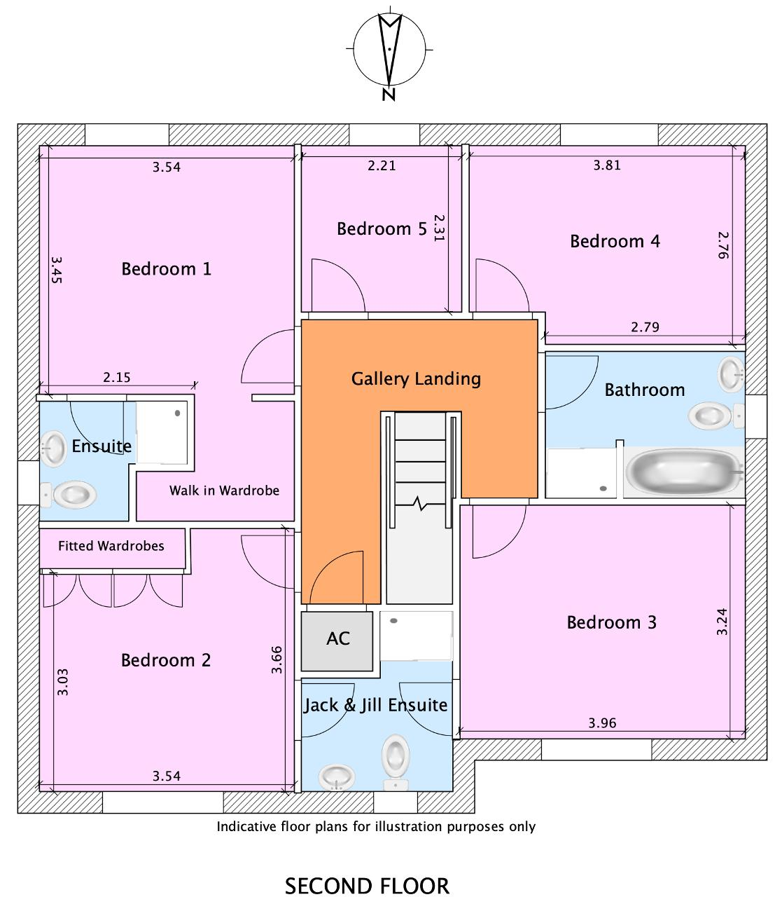 Upstairs, the layout is equally impressive. The principal bedroom enjoys a walk-in wardrobe and stylish en-suite. Bedrooms 2 and 3, currently arranged by the owner as a bedroom and dressing room, are connected by a contemporary Jack and Jill en-suite. Bedrooms 4 and 5 share the family bathroom. Bedrooms 1 to 4 are all generous doubles, while bedroom 5 makes an ideal single room, home office or nursery.