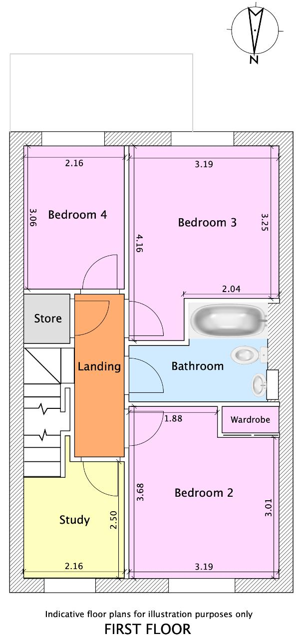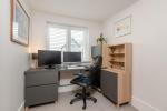 The first floor offers three well-proportioned bedrooms - two generous doubles (one with built-in wardrobes), and a further single, along with a family bathroom and linen cupboard. A door leads to a dedicated study, an invaluable space for those working from home, with stairs rising to the spectacular top-floor suite.