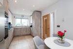 To the front, the sleek breakfast kitchen is beautifully appointed with integrated appliances and stylish finishes, ideal for both everyday living and casual entertaining. The rear of the house is dedicated to a superb lounge diner - a bright, expansive space that spans the full width of the home. Wide bi-fold doors open effortlessly onto the garden, blurring the line between inside and out and creating the perfect setting for gatherings, cosy evenings, or simply enjoying the natural light. A cloakroom and useful storage complete the ground floor.