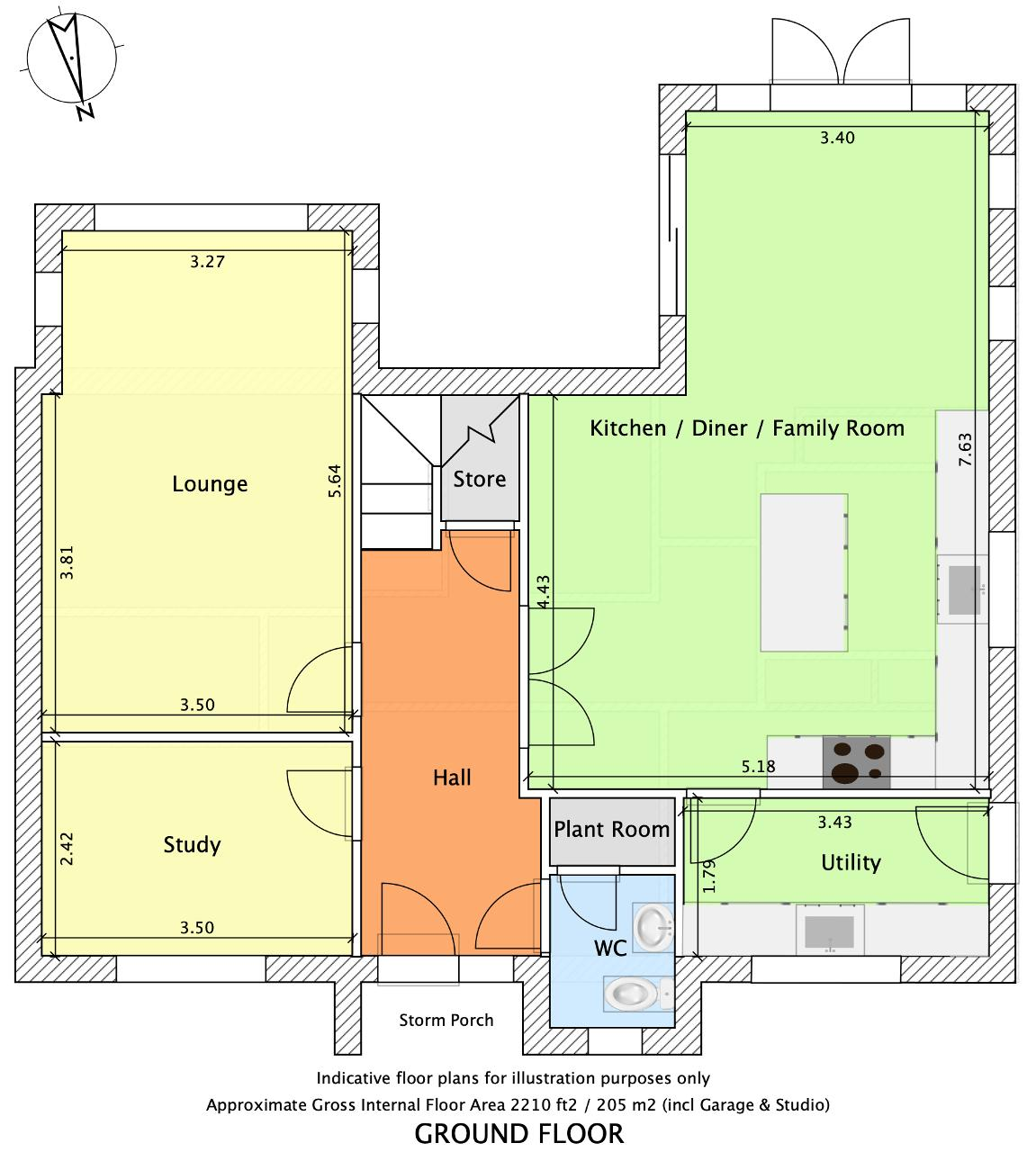 The welcoming hallway provides access to all the main rooms. At the front, the study offers an excellent space for home working, while to the rear the lounge provides a calm and inviting area to unwind, overlooking the garden. To the right, the superb kitchen/diner/family room creates a versatile and sociable heart to the home. The kitchen is beautifully fitted with a large central island and a good range of contemporary units, complemented by plenty of room for dining and relaxation. Completing the ground floor are a practical utility room and a downstairs cloakroom.