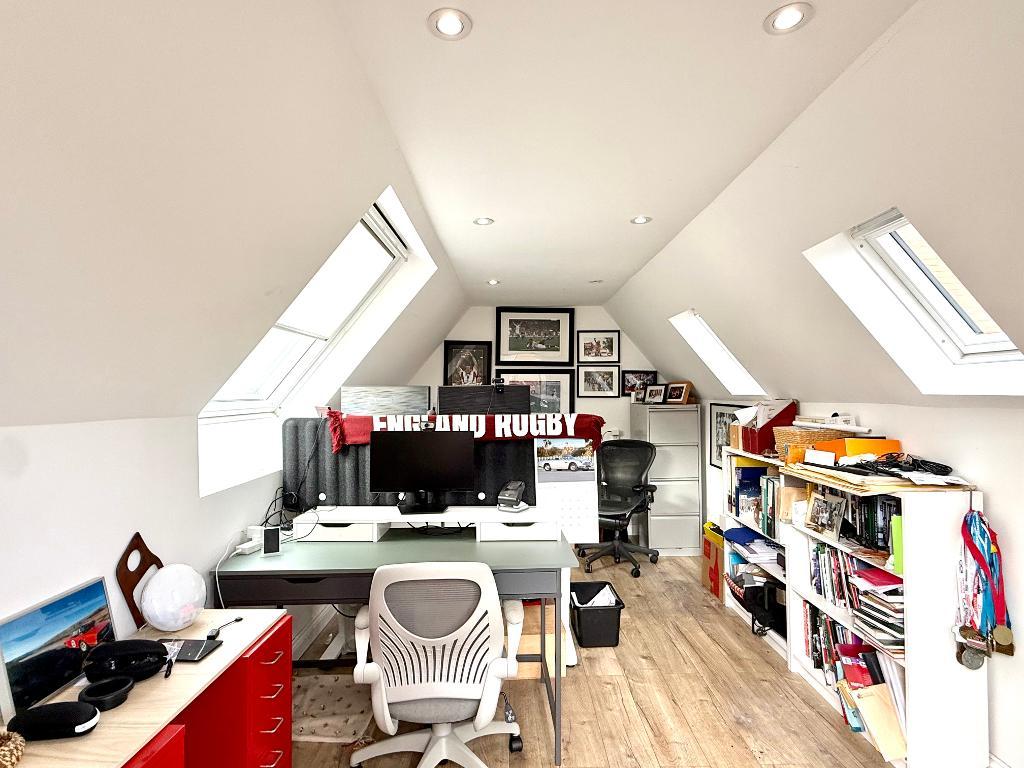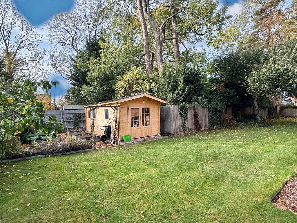 Outside, the private rear garden offers a lovely sense of seclusion with plenty of room for outdoor seating and entertaining. To the front, the wide driveway offers parking for four to five cars and leads to a detached double garage. Above the garage, a generous studio provides additional flexible space - ideal for hobbies or home-working - while the garden also includes a separate workshop/home office.