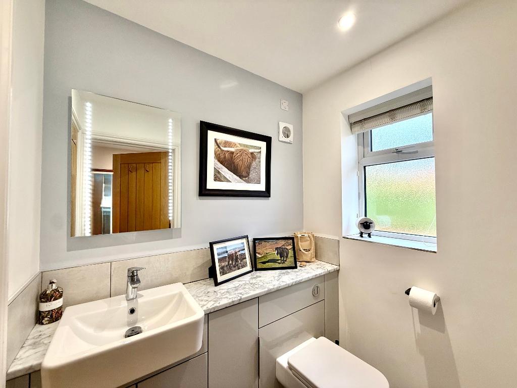 Set within a private gated development of only four substantial detached homes, this impressive five-bedroom residence combines generous living space, thoughtful design and outstanding eco credentials. With an air-source heat pump, solar panels with battery storage, and underfloor heating throughout the ground floor, it offers a sustainable and comfortable way of living in a peaceful village setting.