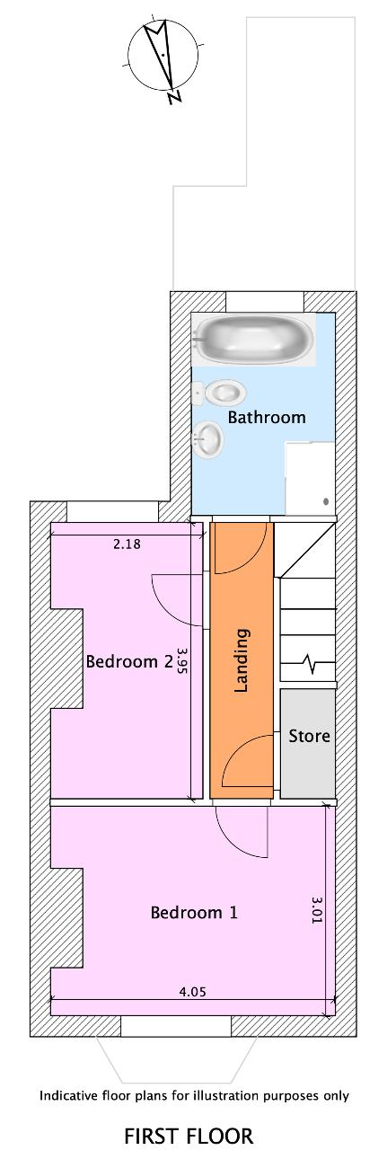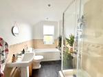 Upstairs there are two good-sized double bedrooms and a family bathroom fitted with a bath, separate shower, WC and basin.