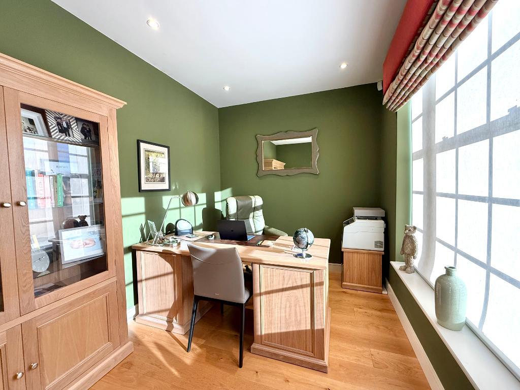 A striking central hallway forms a memorable first impression, introducing the generous proportions found throughout. To the front, the formal lounge offers a refined retreat, complete with a wood-burning stove . A dedicated study also sits to the front of the house, providing an ideal space for working or reading, while a downstairs WC and under-stairs storage add to the convenience and practicality of the ground floor.