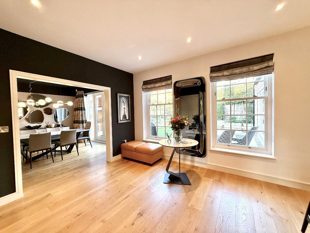The rear of the property is nothing short of spectacular: an expansive kitchen / family / dining room that truly forms the heart of the home. This exceptional open-plan space has been finished to the highest of standards, with remote-operated electric blinds, smart lighting, and a stunning bespoke kitchen featuring top-of-the-range appliances - including Neff "slide and hide" ovens, Liebherr freezer with ice-making feature, full-size fridge, wine cooler, induction hob, microwave and dishwasher. A substantial central island with breakfast bar anchors the room beautifully and flows seamlessly into a generous family living area with full-width opening doors that bring the garden right into the home. The dining area is perfect for entertaining, with French doors opening onto the garden, and a well-appointed utility room provides direct access to the side of the property. Underfloor heating runs across the entire ground floor.