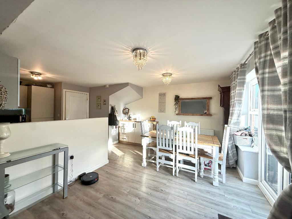 To the rear of the property is a generous open-plan kitchen, dining and living space, ideal for modern living and entertaining. The lounge area was created from the garage conversion and flows seamlessly with the kitchen and dining area, with French doors opening out to the rear garden.