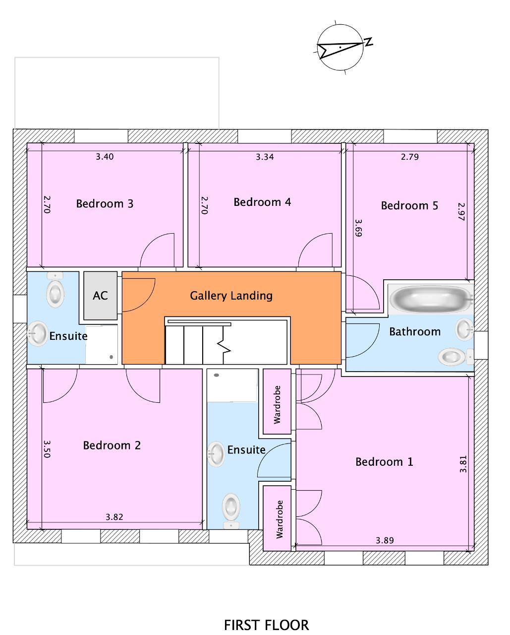 Upstairs, the property offers five excellent bedrooms. The principal bedroom benefits from built-in wardrobes and an en-suite shower room, while bedroom two also enjoys its own en-suite. Bedrooms three and four are both good doubles, with bedroom five being a smaller double, all served by a family bathroom.