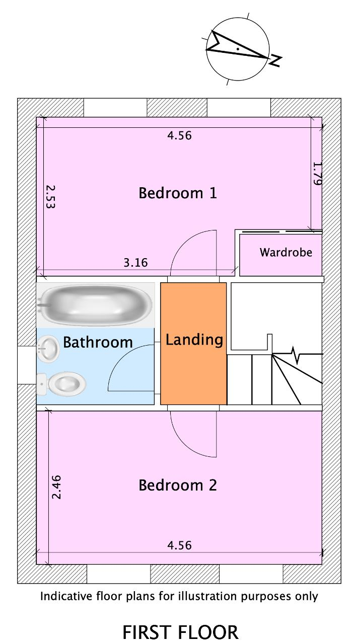 To the first floor, there are two double bedrooms, one of which includes built-in wardrobes, along with a neatly presented bathroom. There is also access to a boarded loft via a pull-down wooden ladder, providing excellent additional storage.