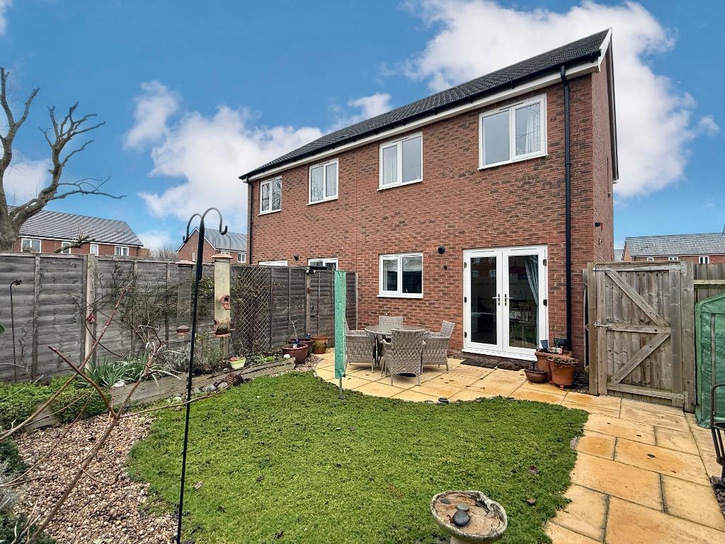 The rear garden has been thoughtfully and carefully landscaped, enjoying a desirable south-westerly aspect. A significant improvement programme was undertaken, with heavy clay soil removed and replaced with a deep layer of sand and quality topsoil, greatly enhancing drainage and creating a far more usable and well-balanced garden. Raised beds provide structure and interest, while the established chamomile lawn adds a soft, natural feel. A patio seating area offers an ideal spot to relax and enjoy the outlook, with the garden backing onto green space and mature trees, providing a pleasing sense of privacy.