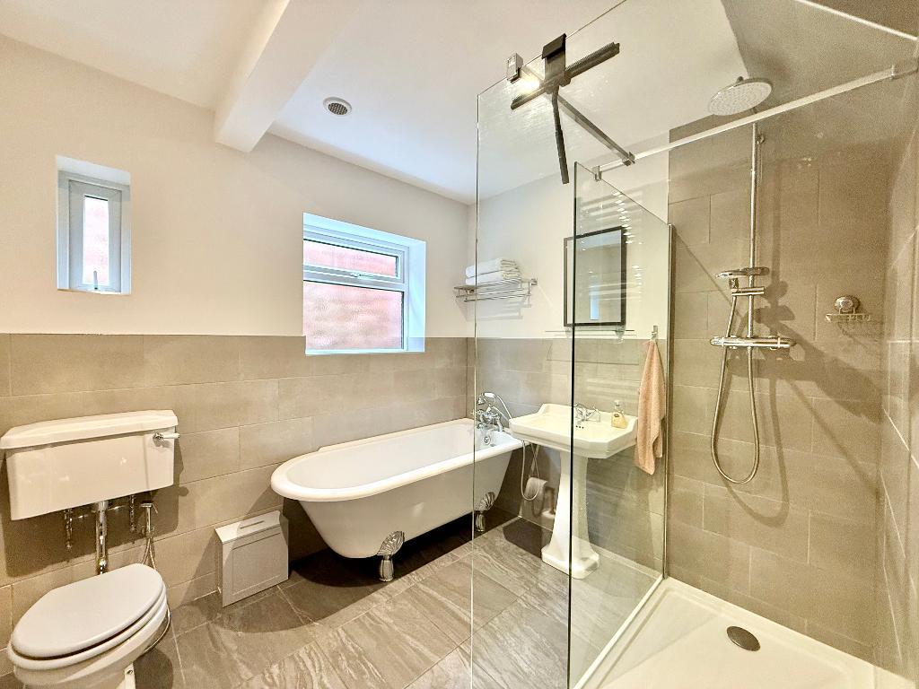 To the front are two well-proportioned double bedrooms, thoughtfully positioned and ideal for guests or single-level living if required. The bathroom has been recently refitted in a fresh, contemporary style, serving the ground floor accommodation.