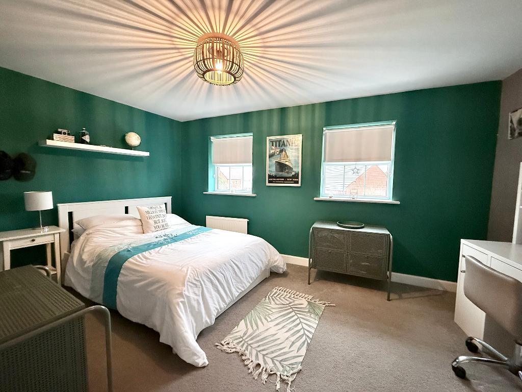 The first floor offers impressive flexibility. A large reception room provides a beautiful main living space, though its size would also comfortably allow it to serve as an additional double bedroom if required. The principal bedroom is also located on this level and benefits from built-in wardrobes and a smart en-suite shower room, creating a peaceful private retreat.