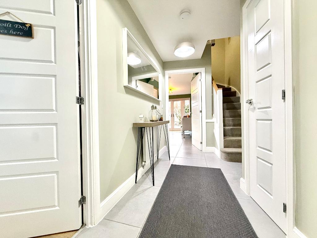 From the moment you step inside, the sense of space and flow is immediately apparent. The welcoming hallway leads through to a superb kitchen/dining/family room at the rear of the home - a wonderfully sociable space fitted with integrated appliances and opening via French doors onto the garden, making it ideal for everyday living and entertaining alike.