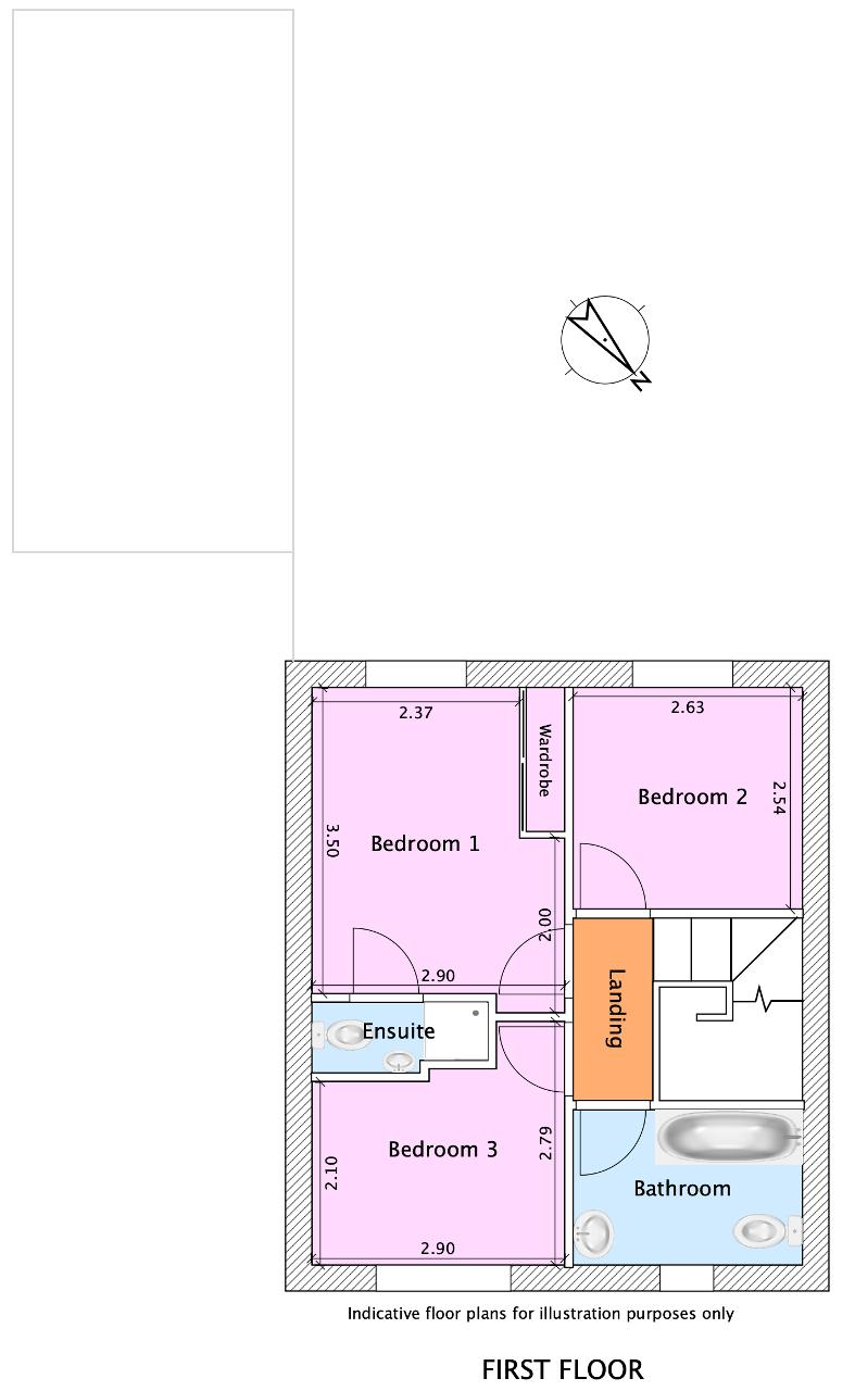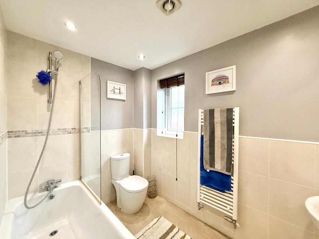 Upstairs, the property offers three good bedrooms, including a principal bedroom featuring fitted wardrobes and a modern en-suite shower room. The remaining bedrooms are served by a well-appointed family bathroom.