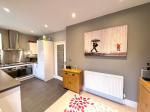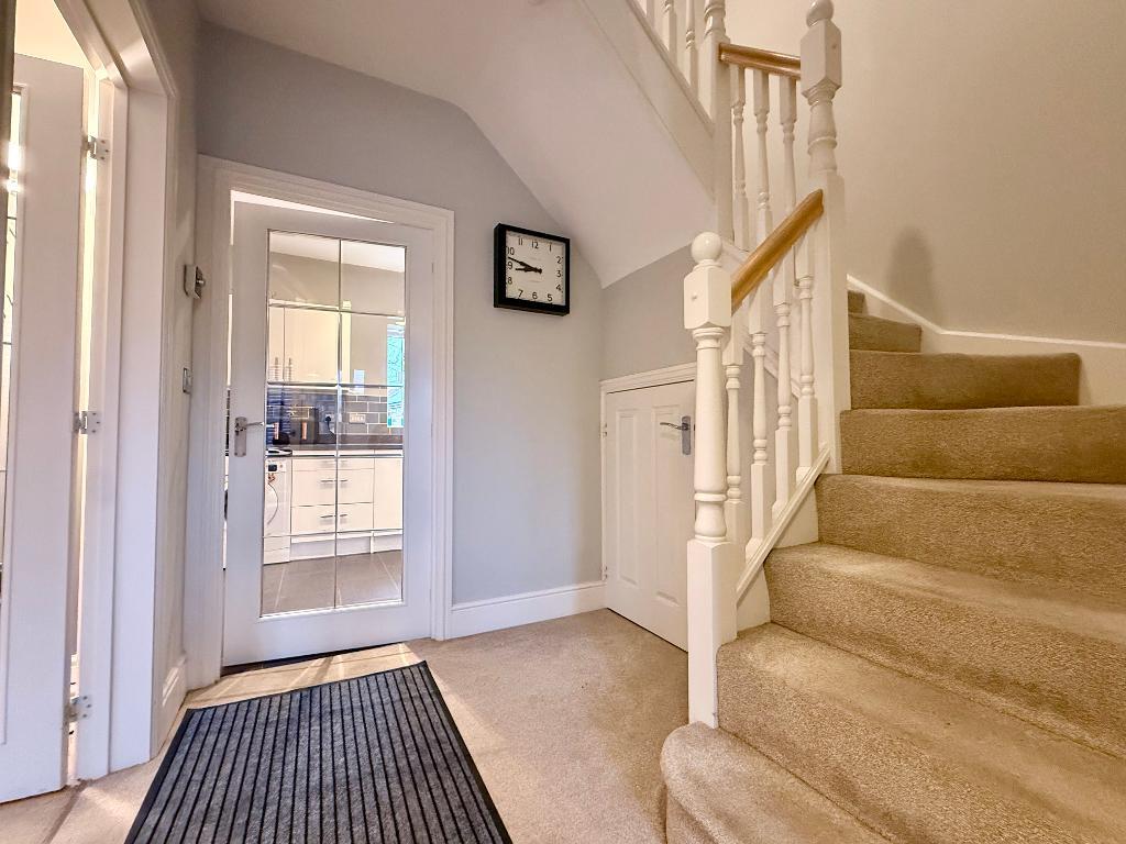 The accommodation is arranged around a welcoming entrance hallway, with the lounge positioned to the front of the property. To the rear is a stylish kitchen/diner fitted with a range of integrated appliances and French doors opening onto the garden, creating a great space for both everyday living and entertaining. A downstairs cloakroom completes the ground floor.