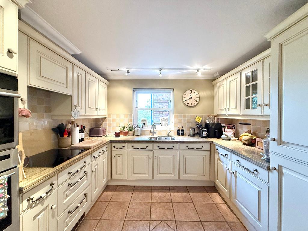 The kitchen is positioned just off the hallway and is well-appointed and thoughtfully arranged, with ample storage and preparation space, ideal for both everyday use and entertaining.