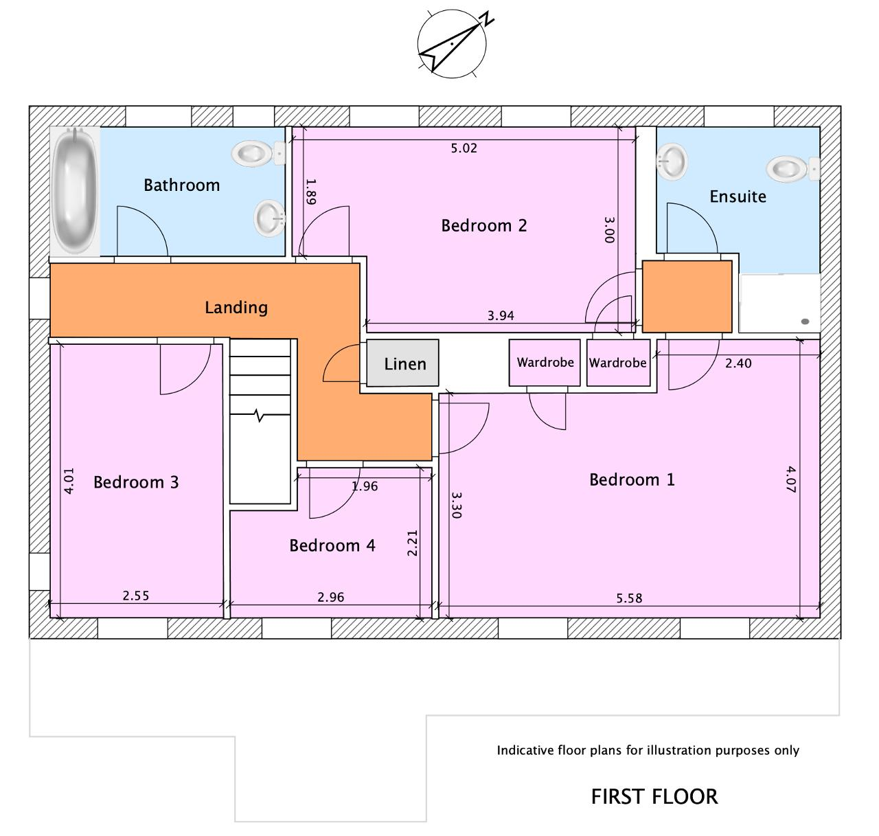 Upstairs, the accommodation is well balanced, with four bedrooms in total. Bedrooms 1 and 2 are both doubles and are connected via a Jack and Jill en-suite, while Bedroom 3 is another double and Bedroom 4 a single, ideal as a nursery or additional study. The family bathroom serves the remaining rooms.
