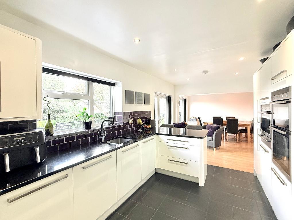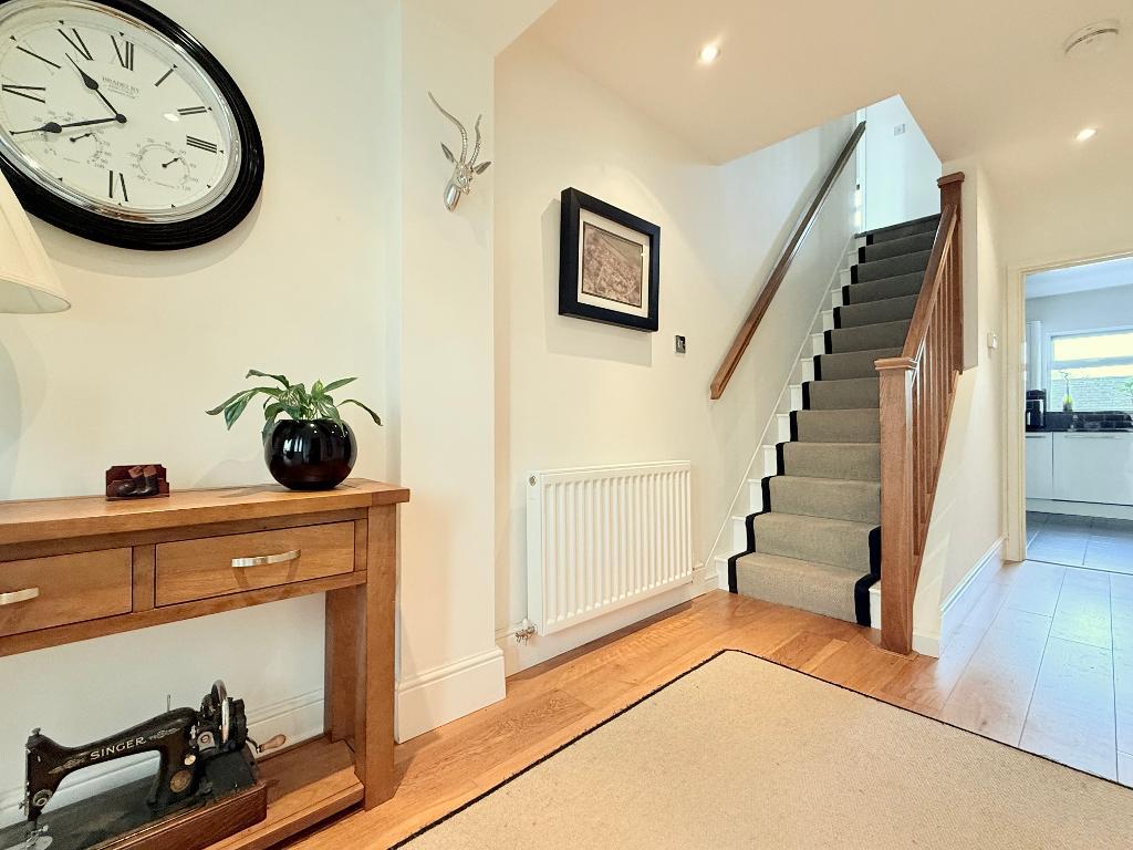 The property is entered via a welcoming hallway, complete with a useful storage cupboard, with access through to the rear of the house where the main living space unfolds. The kitchen/diner spans the back of the property and forms the hub of the home, fitted with a range of integrated appliances and centred around a breakfast bar. There is ample space for a dining table, and doors open out onto the rear garden, creating a natural connection between inside and out.