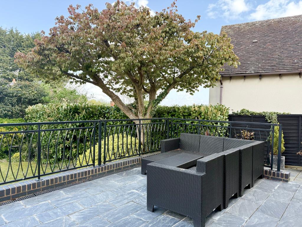 Outside, the property truly comes into its own. The rear garden is a particularly generous and private space, enjoying a good degree of seclusion. A large elevated patio provides an excellent area for seating and outdoor dining, overlooking the rest of the garden which is laid to lawn with attractive shrub borders.
